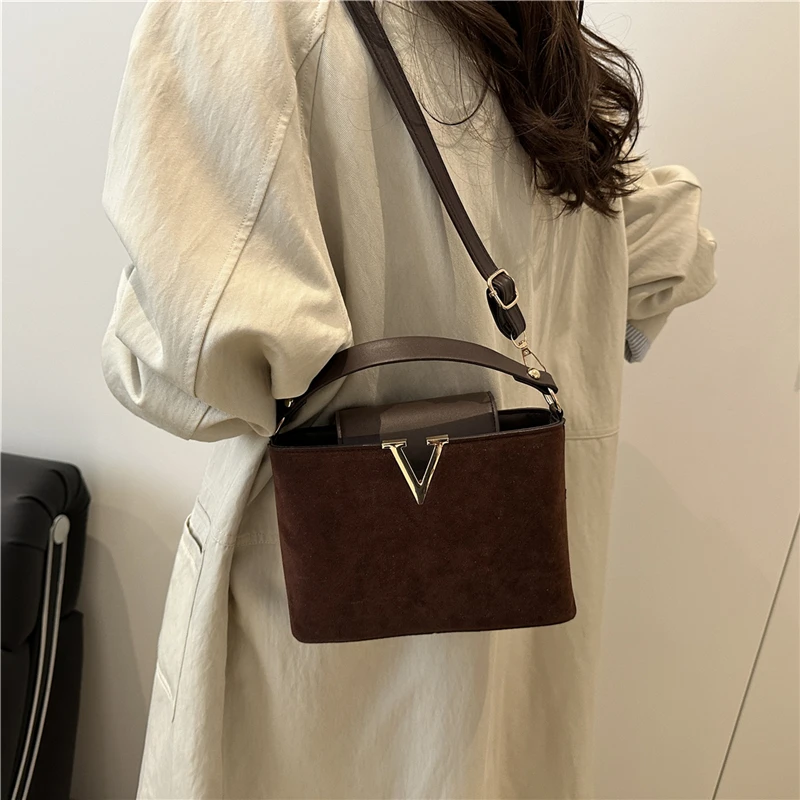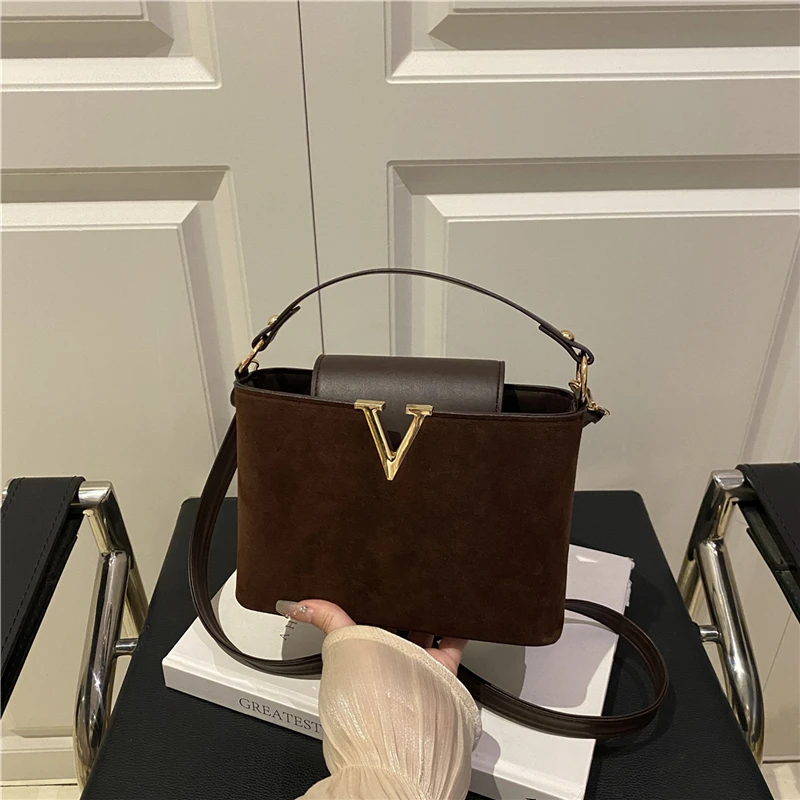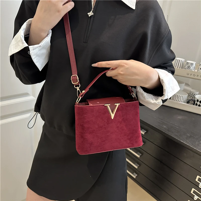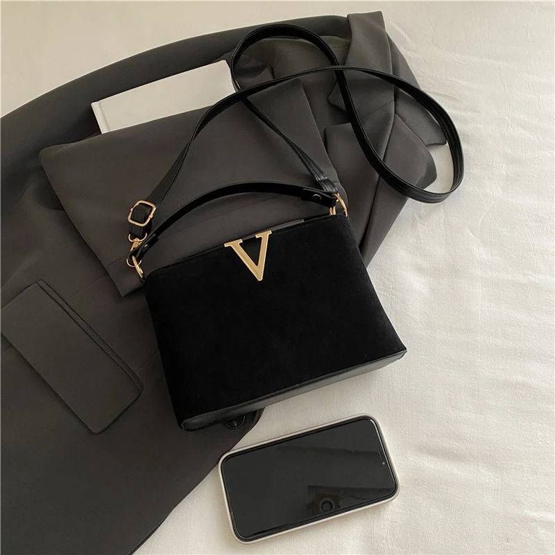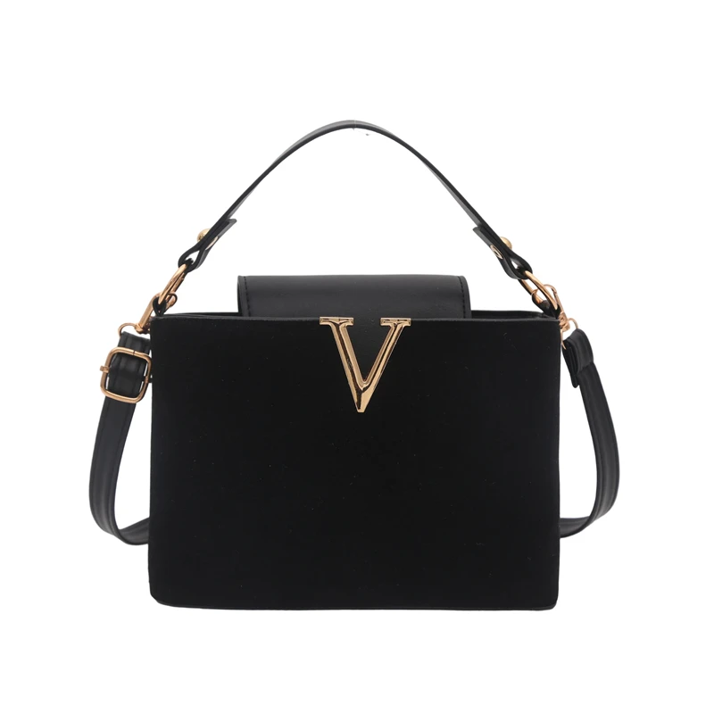 استمتعي بإطلالة راقية مع هذه الحقيبة النسائية الفاخرة بتصميم عصري يبرز حرف V المعدني البارز في المقدمة.