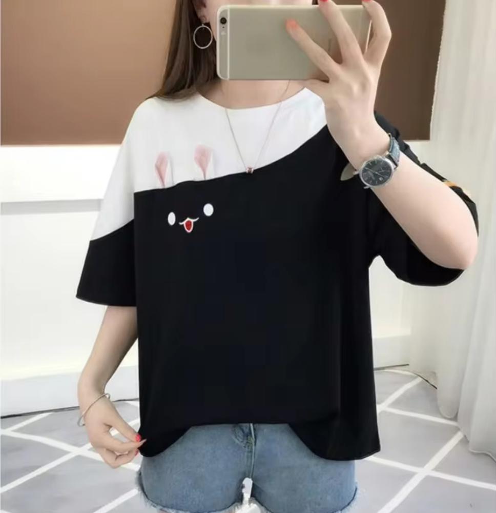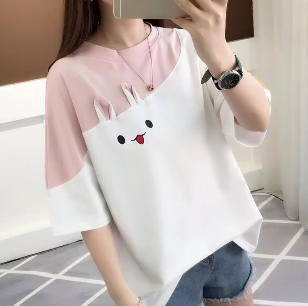تيشيرت نسائي عصري بتصميم أرنب مطرز يمنح إطلالة كاجوال مميزة. يتميز بخامة قطنية ناعمة مريحة مع قصّة واسعة وأكمام قصيرة لحرية الحركة. مناسب للإطلالات اليومية والرحلات الصيفية، ويضيف لمسة مرحة وأنيقة في نفس الوقت